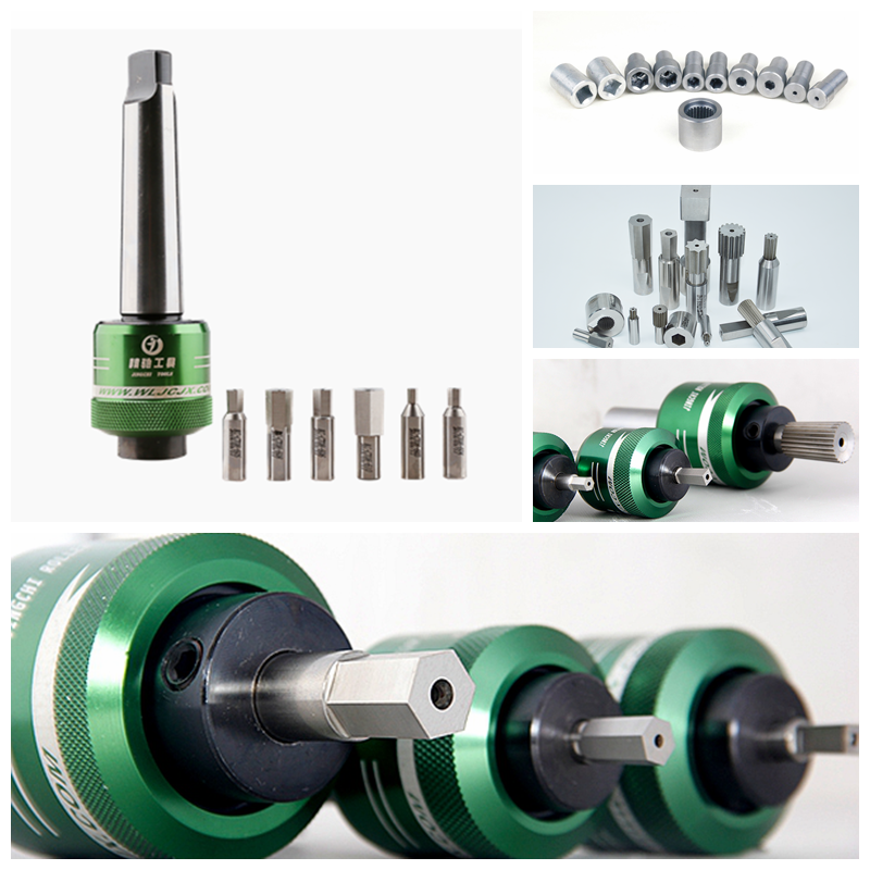 旋轉沖削工具是通過刀具的旋轉轉化為切削的力而進行工作。本公司研制的旋轉沖削刀具,是一個操作簡單的異形孔加工刀具,本工具適用一般車床、CNC自動車床、加工中心、鉆床等設備,可加工盲孔,通孔有規(guī)則或不規(guī)則的多邊形,除了加工標準的六角、正方孔,也可定制星形、花鍵等其它特殊形狀。